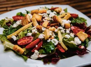 Mezcla de lechugas, espinaca baby, tomate cherry, quesos de la casa, crotones y aderezo del chef