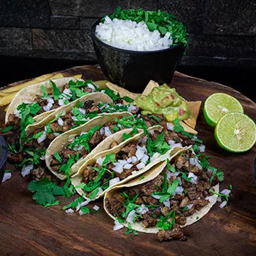 De carne asada o trompo, en maíz o harina, con queso a escoger