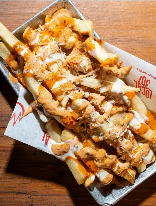 Crujientes papas a la francesa bañadas con aderezo de chipotle, ranch y salsa de tu preferencia