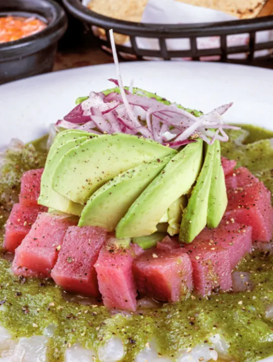 Una deliciosa combinación de camarón y atún, al mero estilo del pacífico con la salsa de tu elección