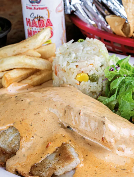 A la plancha, salseado en crema chipotle. Receta del Chef