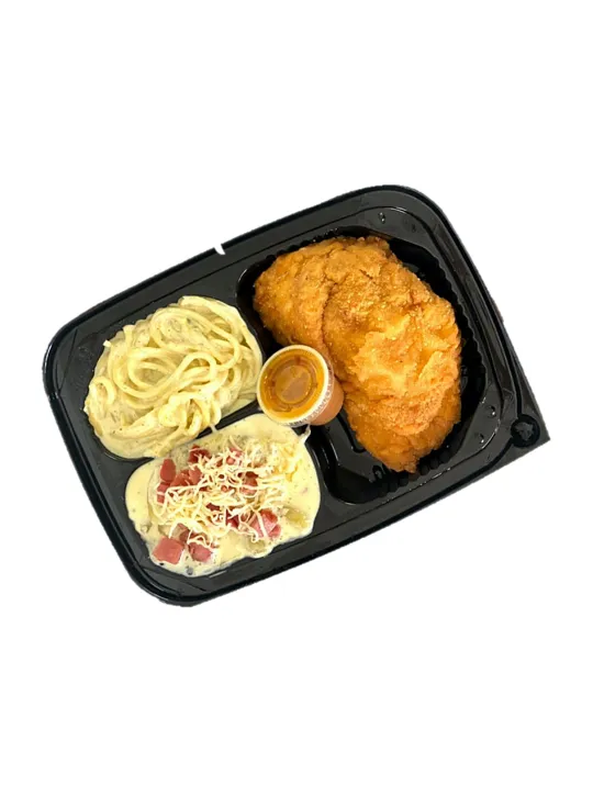 Platillo fuerte + 2 guarniciones ( Arroz, Spaguetti, Papa Alemana, Ensalada de Codo, Verduras )