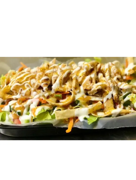 Mix de lechugas, tomate, zanahoria, pepino, crotones, pechuga de pollo a la parrilla y aderezo