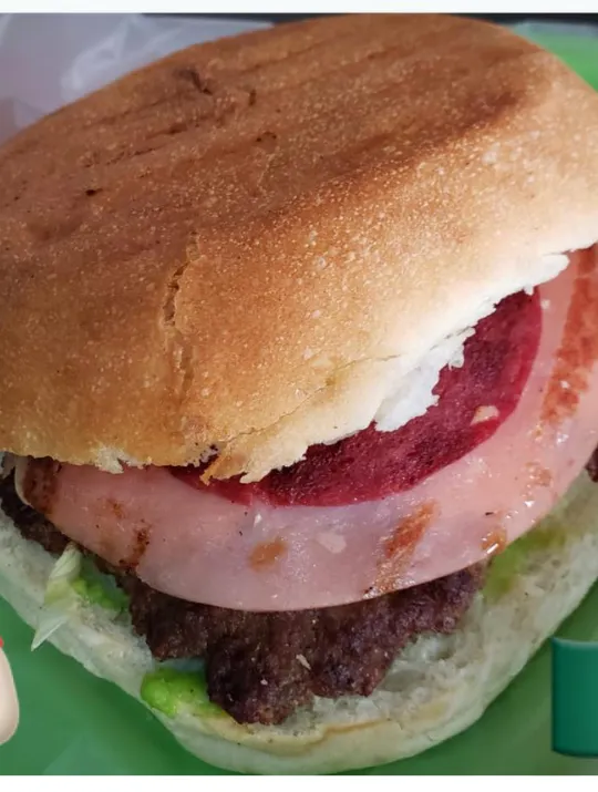 Carne de res, jamón, queso, lechuga, tomate y aguacate